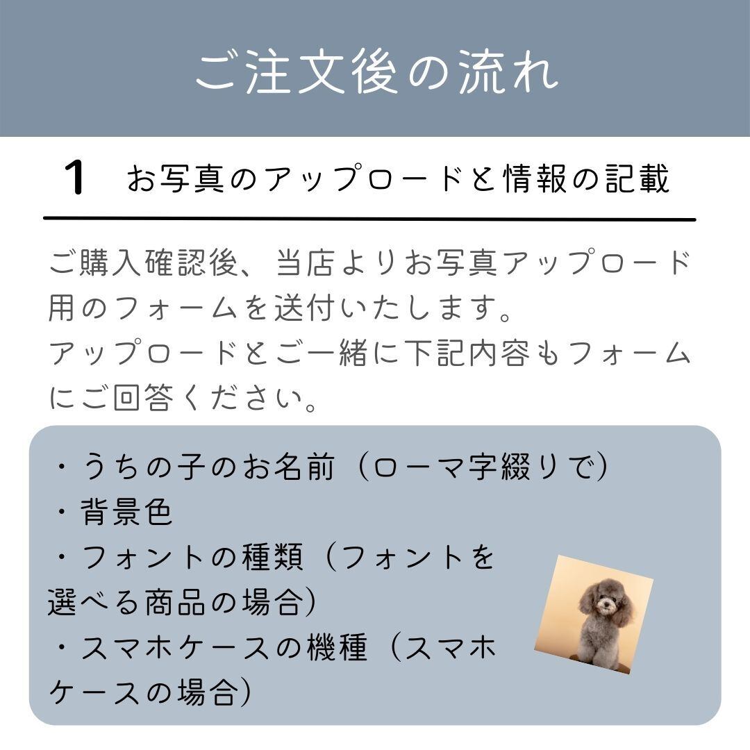ご購入後、当店よりお写真アップロード用のフォームをメッセージにて送付いたします。